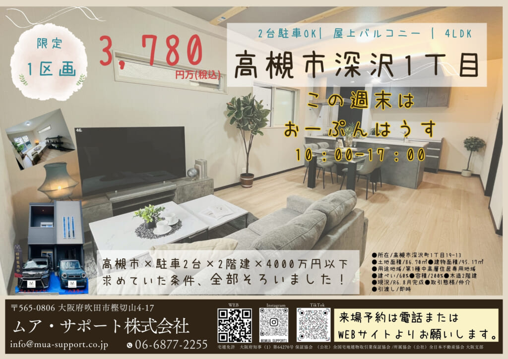 | 設備・条件 | ガスコンロ 三口コンロ システムキッチン 食器洗い乾燥機 給湯 追い焚き 独立洗面台 浴室乾燥機 バス・トイレ別 温水洗浄便座 床暖房 室内洗濯機置き場 都市ガス 公営水道 駐車場有 バルコニー 耐震構造 ・耐震等級2 ・制震ダンパー付き ・電動シャッター付 ・カップボード付 |